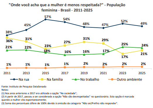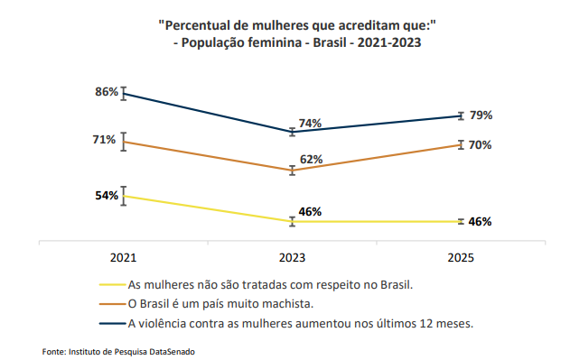 46% das brasileiras seguem percebendo falta de respeito às mulheres no país: