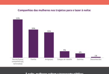 Quando se deslocam nesses trajetos para lazer noturno, as mulheres costumam estar acompanhadas, sobretudo por parceiros (53%), membros da família (39%) e amigos/as (35%), enquanto apenas 6% circulam sozinhas.